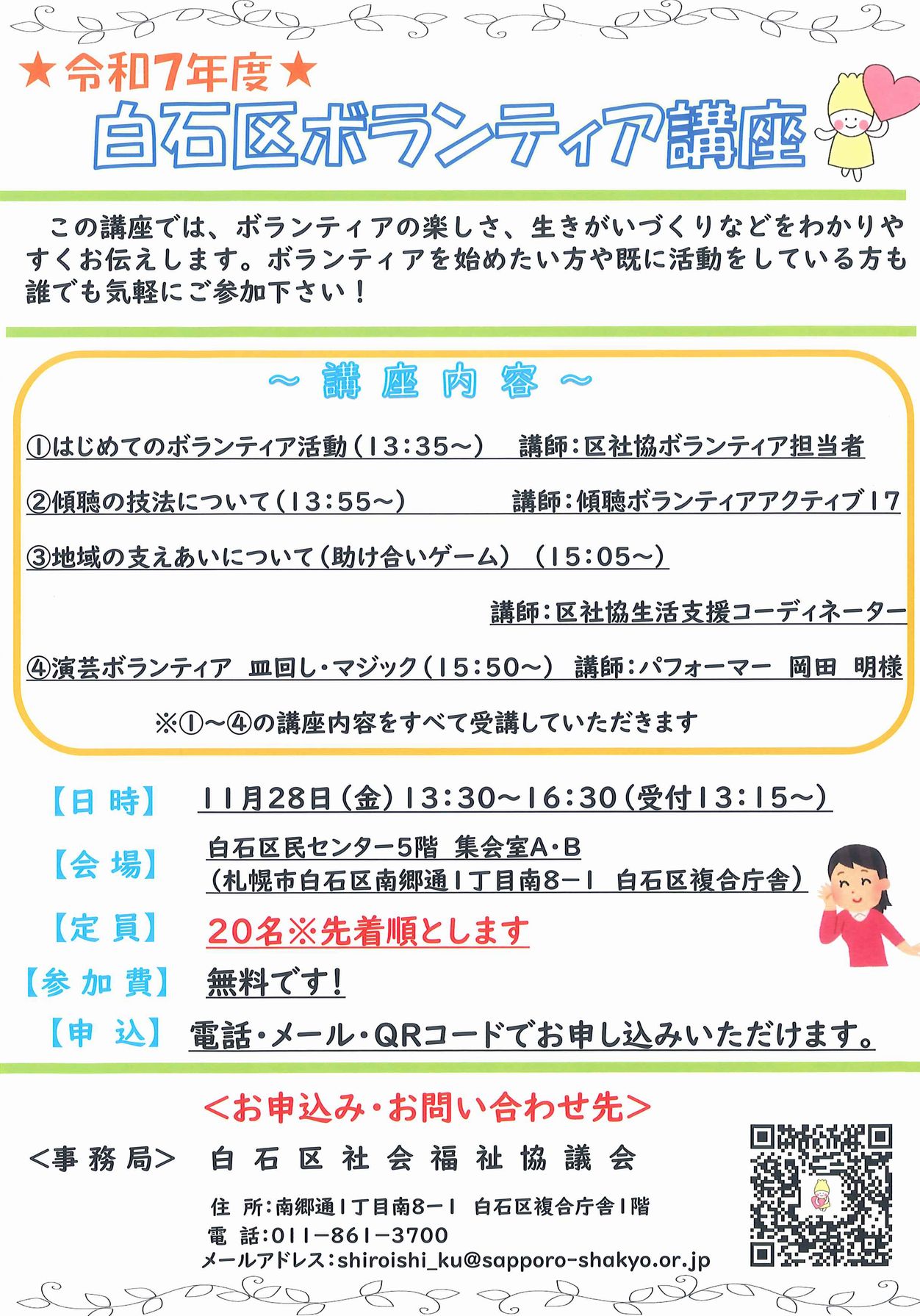 ・白石区社会福祉協議会「白石区ボランティア講座」